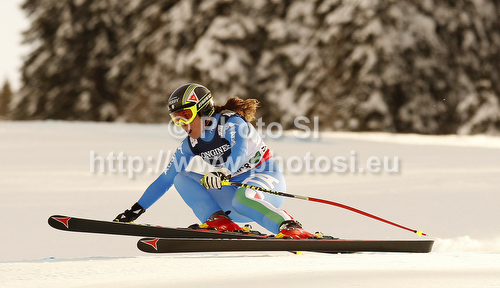 : Sofia Goggia of Italy skiing during Downhill Super combined race of Fis Alpine World Ski Championships 2013 Schladming, Austria. Downhill Super combined race of Fis Alpine World Ski Championships 2013 Schladming, was held on Friday, 8th of February, 2013, on course Streicher in Schladming, Austria.
