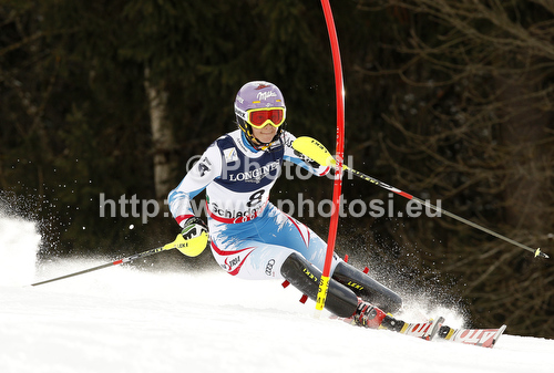 : Michaela Kirchgasser of Austria skiing during Slalom Super combined race of Fis Alpine World Ski Championships 2013 Schladming, Austria. Slalom Super combined race of Fis Alpine World Ski Championships 2013 Schladming, was held on Friday, 8th of February, 2013, on course Streicher in Schladming, Austria.