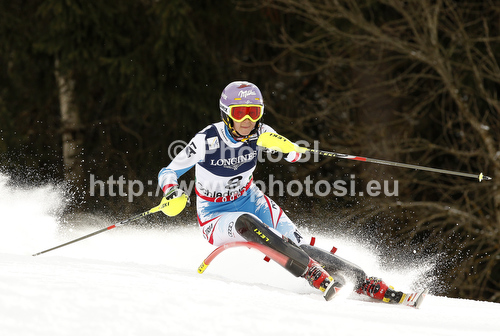 : Michaela Kirchgasser of Austria skiing during Slalom Super combined race of Fis Alpine World Ski Championships 2013 Schladming, Austria. Slalom Super combined race of Fis Alpine World Ski Championships 2013 Schladming, was held on Friday, 8th of February, 2013, on course Streicher in Schladming, Austria.
