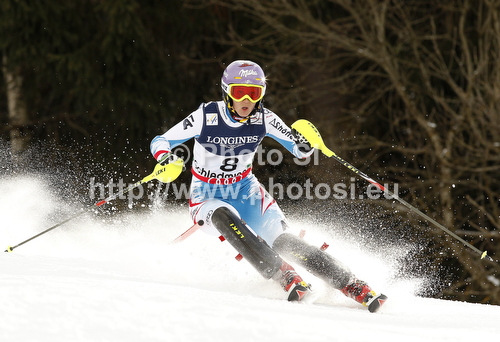 : Michaela Kirchgasser of Austria skiing during Slalom Super combined race of Fis Alpine World Ski Championships 2013 Schladming, Austria. Slalom Super combined race of Fis Alpine World Ski Championships 2013 Schladming, was held on Friday, 8th of February, 2013, on course Streicher in Schladming, Austria.