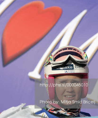 : Nina Halme of Finland reacts in the finish of the first run of the Ladies Giant Slalom race of FIS Alpine World Ski Championships 2013 Schladming, Austria. The Ladies Giant Slalom race of Fis Alpine World Ski Championships 2013 Schladming, was held on Thursday, 14th of February, 2013, on course Planai in Schladming, Austria.
