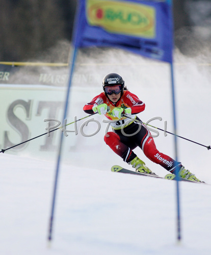 : Mateja Robnik of Slovenia skiing in first run of Women Alpine skiing giant slalom FIS World Cup in Kranjska Gora, Slovenia. Golden Fox trophy was held in on 6th of January 2007 in in Kranjska Gora, Slovenia, as replacement for Maribor, Slovenia, where organizers could not prepare track due high temperatures.