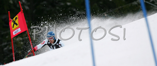 : 4th placed Benjamin Raich of Austria skiing in second run of men giant slalom race of Audi FIS Men Alpine skiing World Cup 2008. Giant slalom race was held in Bad Kleinkirchheim, Austria on 8th of December 2007.