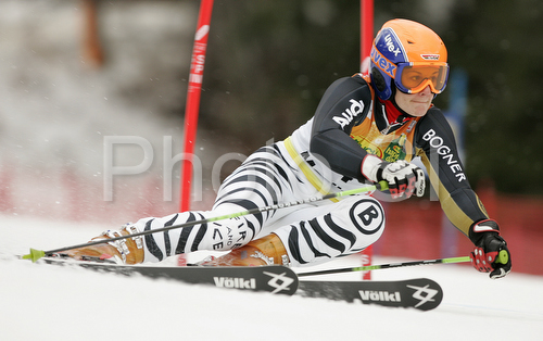 : 5th placed after first run Kathrin Hoelzl of Germany skiing in first run of women giant slalom World Cup race in Maribor, Slovenia. First giant slalom run of 44th Golden Fox trophy and Women FIS Alpine skiing World Cup was held in Maribor, Slovenia, on 12th of January 2008.