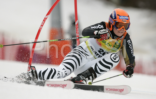 : Viktoria Rebensburg of Germany skiing in first run of women giant slalom World Cup race in Maribor, Slovenia. First giant slalom run of 44th Golden Fox trophy and Women FIS Alpine skiing World Cup was held in Maribor, Slovenia, on 12th of January 2008.