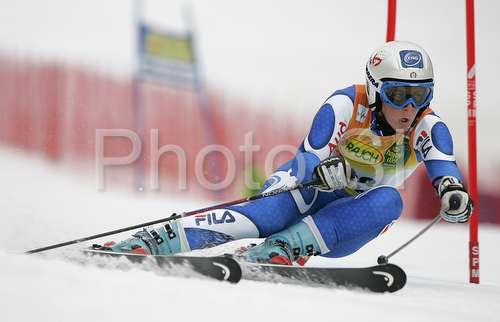 : Camilla Alfieri of Italy skiing in first run of women giant slalom World Cup race in Maribor, Slovenia. First giant slalom run of 44th Golden Fox trophy and Women FIS Alpine skiing World Cup was held in Maribor, Slovenia, on 12th of January 2008.