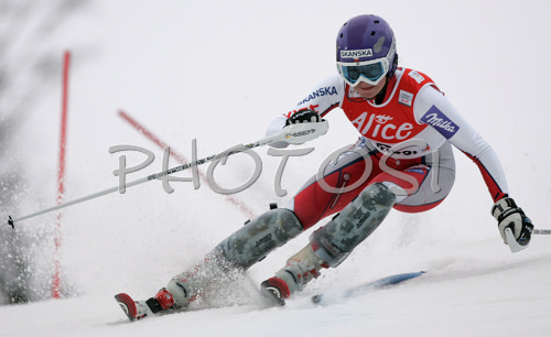 Maribor ,Slovenia - 13.01.2008 : Sarka Zahrobska of Czech skiing in first run of women slalom World Cup race in Maribor, Slovenia. First slalom run of 44th Golden Fox trophy and Women FIS Alpine skiing World Cup was held in Maribor, Slovenia, on 13th of January 2008. Photo by: Primoz Jeroncic