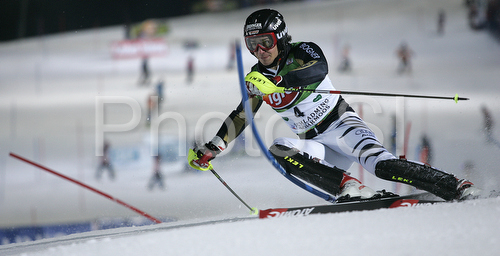 Schladming ,Austria - 22.01.2008 : Fourth placed after first run Felix Neureuther of Germany skiing in first run of men slalom World Cup race in Schladming, Austria. Slalom race of traditional Schladming Night race and Men FIS Alpine skiing World Cup was held in Schladming, Austria, on 22nd of January 2008. Photo by: Primoz Jeroncic