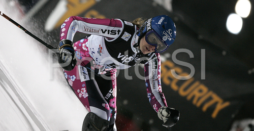 : Third placed Veronika Zuzulova of Slovakia skiing in second run of women slalom World Cup race in Zagreb, Croatia. Slalom race of Snow Queen Trophy 2008 and Women FIS Alpine skiing World Cup was held in Zagreb, Croatia, on 15th of February 2008.