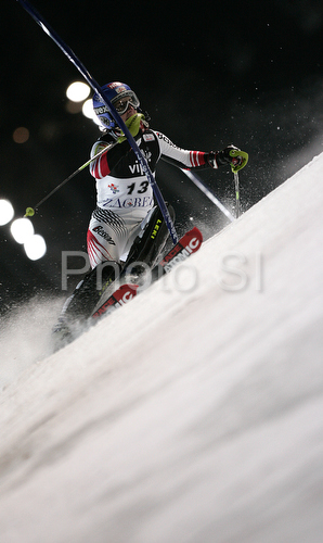 : Fourth placed Kathrin Zettel of Austria skiing in second run of women slalom World Cup race in Zagreb, Croatia. Slalom race of Snow Queen Trophy 2008 and Women FIS Alpine skiing World Cup was held in Zagreb, Croatia, on 15th of February 2008.