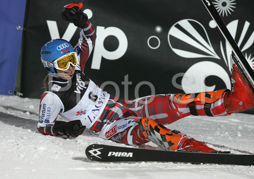 Zagreb ,Croatia - 15.02.2008 : Winner Tanja Poutiainen of Finland reacts in finish of second run of women slalom World Cup race in Zagreb, Croatia. Slalom race of Snow Queen Trophy 2008 and Women FIS Alpine skiing World Cup was held in Zagreb, Croatia, on 15th of February 2008. Photo by: Mitja Smid Bricelj