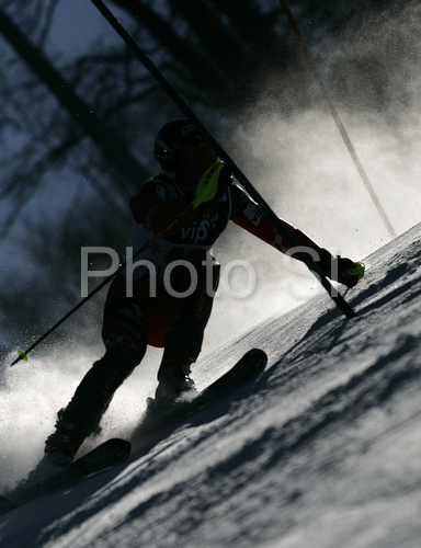 : Ivan Ratkic of Croatia skiing in first run of men slalom World Cup race in Zagreb, Croatia. Slalom race of Men FIS Alpine skiing World Cup was held in Zagreb, Croatia, on 17th of February 2008.