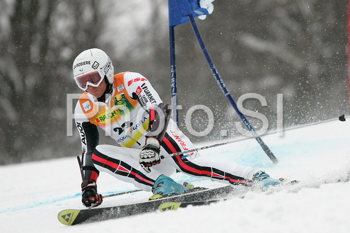: Joel Chenal of France skiing in first run of men giant slalom World Cup race in Kranjska Gora, Slovenia. Giant slalom race of Men FIS Alpine skiing World Cup was held in Kranjska Gora, Slovenia, on 8th of March 2008.