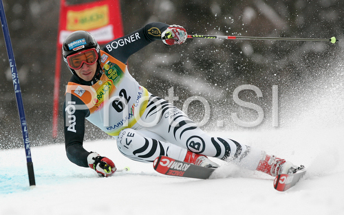 : Felix Neureuther of Germany skiing in first run of men giant slalom World Cup race in Kranjska Gora, Slovenia. Giant slalom race of Men FIS Alpine skiing World Cup was held in Kranjska Gora, Slovenia, on 8th of March 2008.