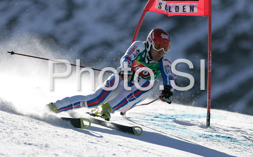 : Cyprien Richard of France skiing during first run of Men giant slalom Audi FIS Ski World Cup 2008-09 opening race. First race of Men Audi FIS Ski World Cup season 2008-09 was held on Sunday, 26th of October 2008 in Soelden, Austria.