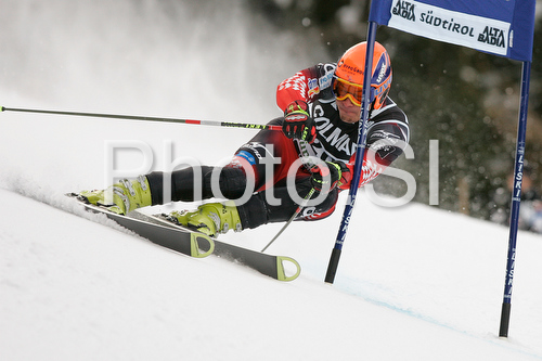 : Ivica Kostelic of Croatia skiing in first run of Alta Badia Men giant slalom race of Audi FIS Ski World Cup 2008-09. Giant slalom race of Men Audi FIS Ski World Cup 2008-09 was traditionally held on Gran Risa course in Alta Badia, Italy, on Sunday, 21st of December 2008.