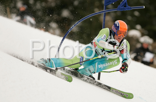 : Bernard Vajdic of Slovenia skiing in first run of Alta Badia Men giant slalom race of Audi FIS Ski World Cup 2008-09. Giant slalom race of Men Audi FIS Ski World Cup 2008-09 was traditionally held on Gran Risa course in Alta Badia, Italy, on Sunday, 21st of December 2008.