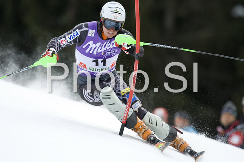 : Ted Ligety of the United States clears a gate during the mens alpine ski World Cup Slalom race in Alta Badia, Italy, Monday, December 22, 2008.