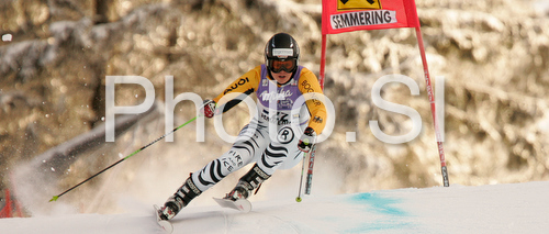 : Viktoria Rebensburg of Germany skiing in first run of Semmering women giant slalom race of Audi FIS Ski World Cup 2008-09. Giant slalom race of Women Audi FIS Ski World Cup 2008-09 was held Semmering, Austria, on Sunday, 28th of December 2008.