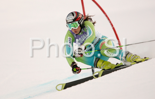 : Mateja Robnik of Slovenia skiing in first run of Semmering women giant slalom race of Audi FIS Ski World Cup 2008-09. Giant slalom race of Women Audi FIS Ski World Cup 2008-09 was held Semmering, Austria, on Sunday, 28th of December 2008.