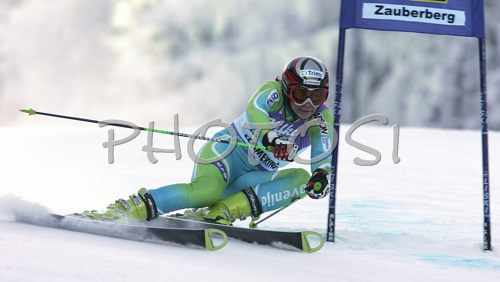 : Vanja Brodnik of Slovenia skiing in first run of Semmering women giant slalom race of Audi FIS Ski World Cup 2008-09. Giant slalom race of Women Audi FIS Ski World Cup 2008-09 was held Semmering, Austria, on Sunday, 28th of December 2008.