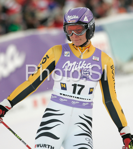 : Maria Riesch of Germany reacts in finish of second run of Semmering women giant slalom race of Audi FIS Ski World Cup 2008-09. Giant slalom race of Women Audi FIS Ski World Cup 2008-09 was held Semmering, Austria, on Sunday, 28th of December 2008.