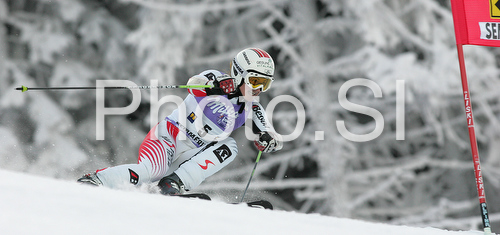 : Seventh placed Elisabeth Goergl of Austria skiing in second run of Semmering women giant slalom race of Audi FIS Ski World Cup 2008-09. Giant slalom race of Women Audi FIS Ski World Cup 2008-09 was held Semmering, Austria, on Sunday, 28th of December 2008.