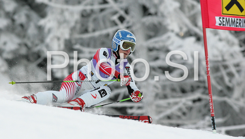 : Winner Kathrin Zettel of Austria skiing in second run of Semmering women giant slalom race of Audi FIS Ski World Cup 2008-09. Giant slalom race of Women Audi FIS Ski World Cup 2008-09 was held Semmering, Austria, on Sunday, 28th of December 2008.