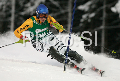 : Monika Bergmann of Germany skiing in first run of Semmering women slalom race of Audi FIS Ski World Cup 2008-09. Slalom race of Women Audi FIS Ski World Cup 2008-09 was held Semmering, Austria, on Monday, 29th of December 2008.