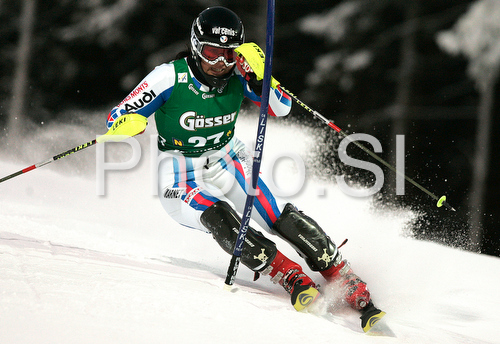 : Claire Dautherives of France skiing in first run of Semmering women slalom race of Audi FIS Ski World Cup 2008-09. Slalom race of Women Audi FIS Ski World Cup 2008-09 was held Semmering, Austria, on Monday, 29th of December 2008.