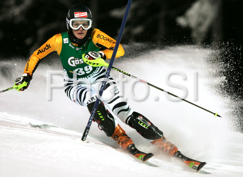 : Christina Geiger of Germany skiing in first run of Semmering women slalom race of Audi FIS Ski World Cup 2008-09. Slalom race of Women Audi FIS Ski World Cup 2008-09 was held Semmering, Austria, on Monday, 29th of December 2008.