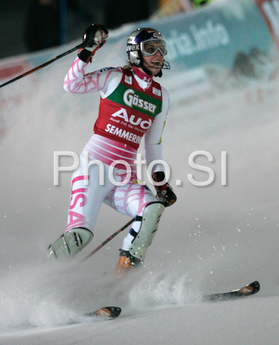 : Third placed Lindsey Vonn of USA reacts in finish of second run of Semmering women slalom race of Audi FIS Ski World Cup 2008-09. Slalom race of Women Audi FIS Ski World Cup 2008-09 was held Semmering, Austria, on Monday, 29th of December 2008.