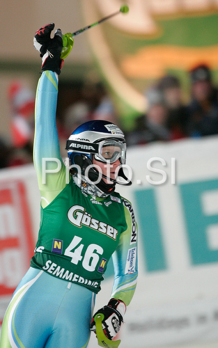 : Marusa Ferk of Slovenia reacts in finish of second run of Semmering women slalom race of Audi FIS Ski World Cup 2008-09. Slalom race of Women Audi FIS Ski World Cup 2008-09 was held Semmering, Austria, on Monday, 29th of December 2008.