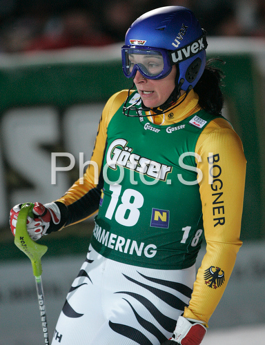 : Monika Bergmann of Germany reacts in finish of second run of Semmering women slalom race of Audi FIS Ski World Cup 2008-09. Slalom race of Women Audi FIS Ski World Cup 2008-09 was held Semmering, Austria, on Monday, 29th of December 2008.