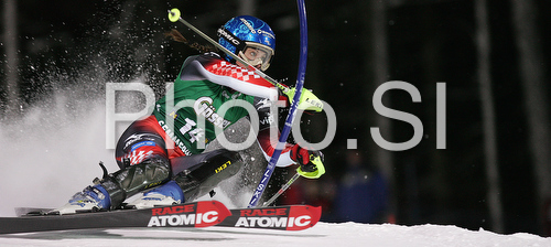 : Sixth placed Ana Jelusic of Croatia skiing in second run of Semmering women slalom race of Audi FIS Ski World Cup 2008-09. Slalom race of Women Audi FIS Ski World Cup 2008-09 was held Semmering, Austria, on Monday, 29th of December 2008.