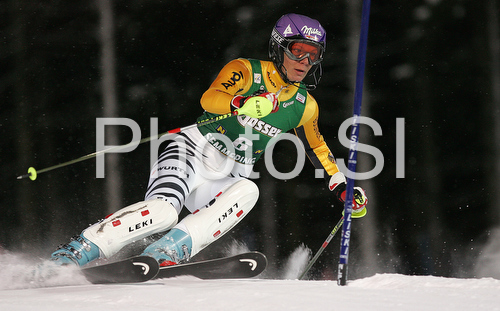 : Winner Maria Riesch of Germany skiing in second run of Semmering women slalom race of Audi FIS Ski World Cup 2008-09. Slalom race of Women Audi FIS Ski World Cup 2008-09 was held Semmering, Austria, on Monday, 29th of December 2008.