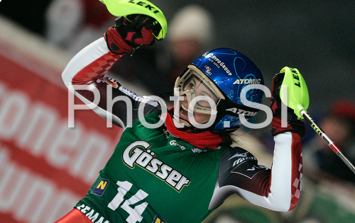 : Sixth placed Ana Jelusic of Croatia reacts in finish of second run of Semmering women slalom race of Audi FIS Ski World Cup 2008-09. Slalom race of Women Audi FIS Ski World Cup 2008-09 was held Semmering, Austria, on Monday, 29th of December 2008.