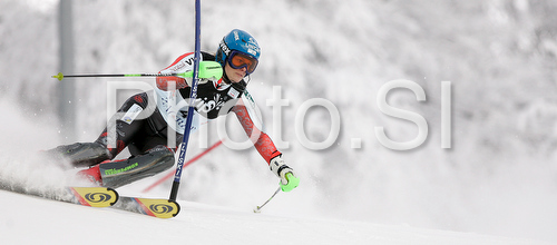 : Veronika Zuzulova of Slovakia skiing in first run of Zagreb women slalom race of Audi FIS Ski World Cup 2008-09. Slalom race of Women Audi FIS Ski World Cup 2008-09 was held Zagreb, Croatia, on Sunday, 4th of January 2009.