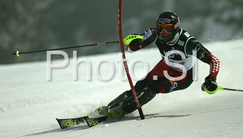 : Dalibor Samsal of Croatia skiing in first run of Zagreb men slalom race of Audi FIS Ski World Cup 2008-09. Slalom race of Men Audi FIS Ski World Cup 2008-09 was held on Sljeme above Zagreb, Croatia, on Tuesday, 6th of January 2009.