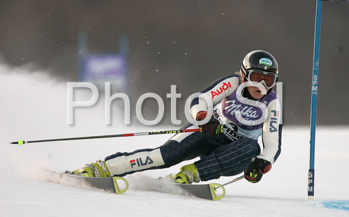 : Leader after first run Denise Karbon of Italy skiing in first run of Maribor women giant slalom race of Audi FIS Ski World Cup 2008-09. Giant slalom race of Women Audi FIS Ski World Cup 2008-09 was held in Maribor, Slovenia on Saturday, 10th of January 2009.