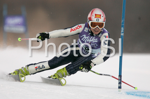 : Nicole Gius of Italy skiing in first run of Maribor women giant slalom race of Audi FIS Ski World Cup 2008-09. Giant slalom race of Women Audi FIS Ski World Cup 2008-09 was held in Maribor, Slovenia on Saturday, 10th of January 2009.