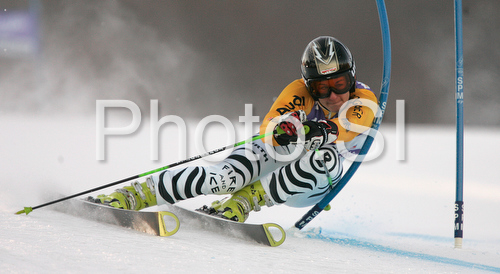 : Fourth placed after first run Kathrin Hoelzl of Germany skiing in first run of Maribor women giant slalom race of Audi FIS Ski World Cup 2008-09. Giant slalom race of Women Audi FIS Ski World Cup 2008-09 was held in Maribor, Slovenia on Saturday, 10th of January 2009.