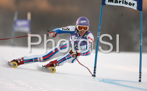 : Eight placed after first run Ingrid Jacquemod of France skiing in first run of Maribor women giant slalom race of Audi FIS Ski World Cup 2008-09. Giant slalom race of Women Audi FIS Ski World Cup 2008-09 was held in Maribor, Slovenia on Saturday, 10th of January 2009.