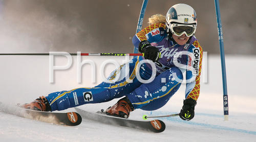 : Jessica Lindell-Vikarby of Sweden skiing in first run of Maribor women giant slalom race of Audi FIS Ski World Cup 2008-09. Giant slalom race of Women Audi FIS Ski World Cup 2008-09 was held in Maribor, Slovenia on Saturday, 10th of January 2009.