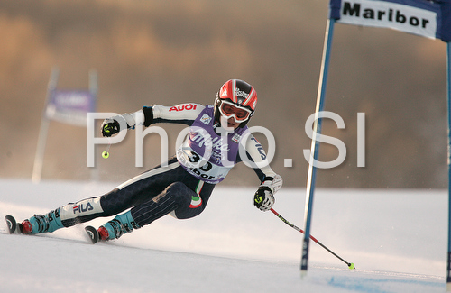 : Karen Putzer of Italy skiing in first run of Maribor women giant slalom race of Audi FIS Ski World Cup 2008-09. Giant slalom race of Women Audi FIS Ski World Cup 2008-09 was held in Maribor, Slovenia on Saturday, 10th of January 2009.