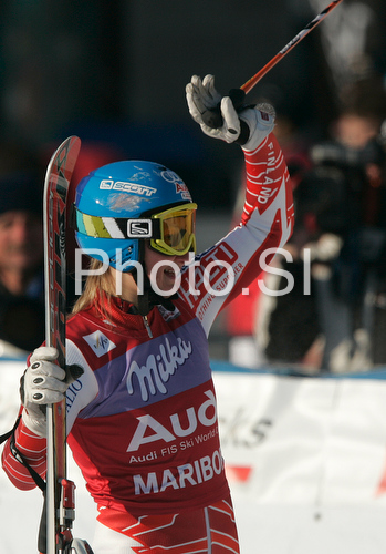 Maribor ,Slovenia - 10.01.2009 : Fourth placed Tanja Poutiainen of Finland reacts in finish of second run of Maribor women giant slalom race of Audi FIS Ski World Cup 2008-09. Giant slalom race of Women Audi FIS Ski World Cup 2008-09 was held in Maribor, Slovenia on Saturday, 10th of January 2009. Photo by: Primoz Jeroncic