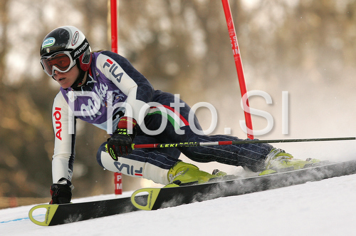 : Second placed Denise Karbon of Italy skiing in second run of Maribor women giant slalom race of Audi FIS Ski World Cup 2008-09. Giant slalom race of Women Audi FIS Ski World Cup 2008-09 was held in Maribor, Slovenia on Saturday, 10th of January 2009.