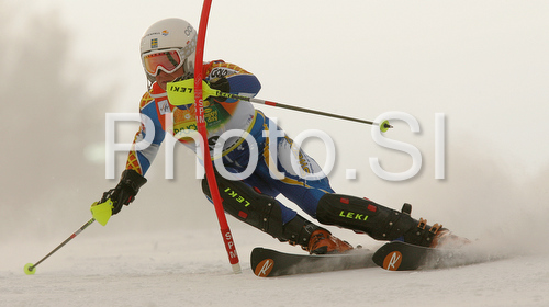 : Eight placed after first run Frida Hansdotter of Sweden skiing in first run of Maribor women slalom race of Audi FIS Ski World Cup 2008-09. Slalom race of Women Audi FIS Ski World Cup 2008-09 was held in Maribor, Slovenia on Sunday, 11th of January 2009.