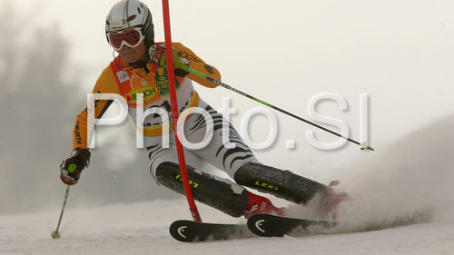 : Fanny Chmelar of Germany skiing in first run of Maribor women slalom race of Audi FIS Ski World Cup 2008-09. Slalom race of Women Audi FIS Ski World Cup 2008-09 was held in Maribor, Slovenia on Sunday, 11th of January 2009.
