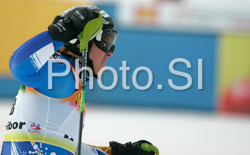 : Fourth placed Anja Paerson of Sweden reacts in finish of second run of Maribor women slalom race of Audi FIS Ski World Cup 2008-09. Slalom race of Women Audi FIS Ski World Cup 2008-09 was held in Maribor, Slovenia on Sunday, 11th of January 2009.